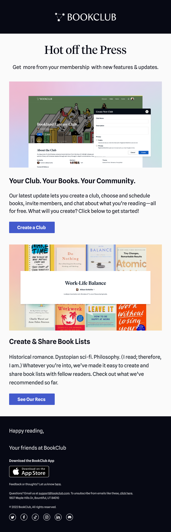 Examples from weekly (approximately 8-10 per week) emails sent to an audience of 1.9 million.